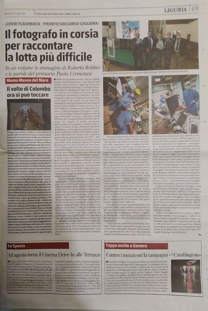 Immagini, messaggi dal profondo. Frammenti di emozioni - paura, incertezza, sollievo, gratitudine - colte in un anno in trincea, sulla prima linea del fronte aperto contro il Covid al Pronto soccorso dell’Ospedale Galliera. Tutto questo è “Covid Flashback – Pronto soccorso Ospedali Galliera”, il libro fotografico (96 pagine a colori, con testi in lingua italiana e inglese, edito da Erga Edizioni, Genova) realizzato grazie all’opera del fotografo Roberto Bobbio all’interno del reparto di prima emergenza dell’ospedale di Carignano. Coautore del volume è il dottor Paolo Cremonesi, primario di Medicina e chirurgia d’accettazione e d’urgenza e direttore del DEA dell’E.O. Ospedali Galliera. Il progetto editoriale è di Tiziana Zito, realizzato grazie alla sponsorizzazione di A.Se.F. - Servizi Funebri del Comune di Genova, con il patrocinio della Regione Liguria.