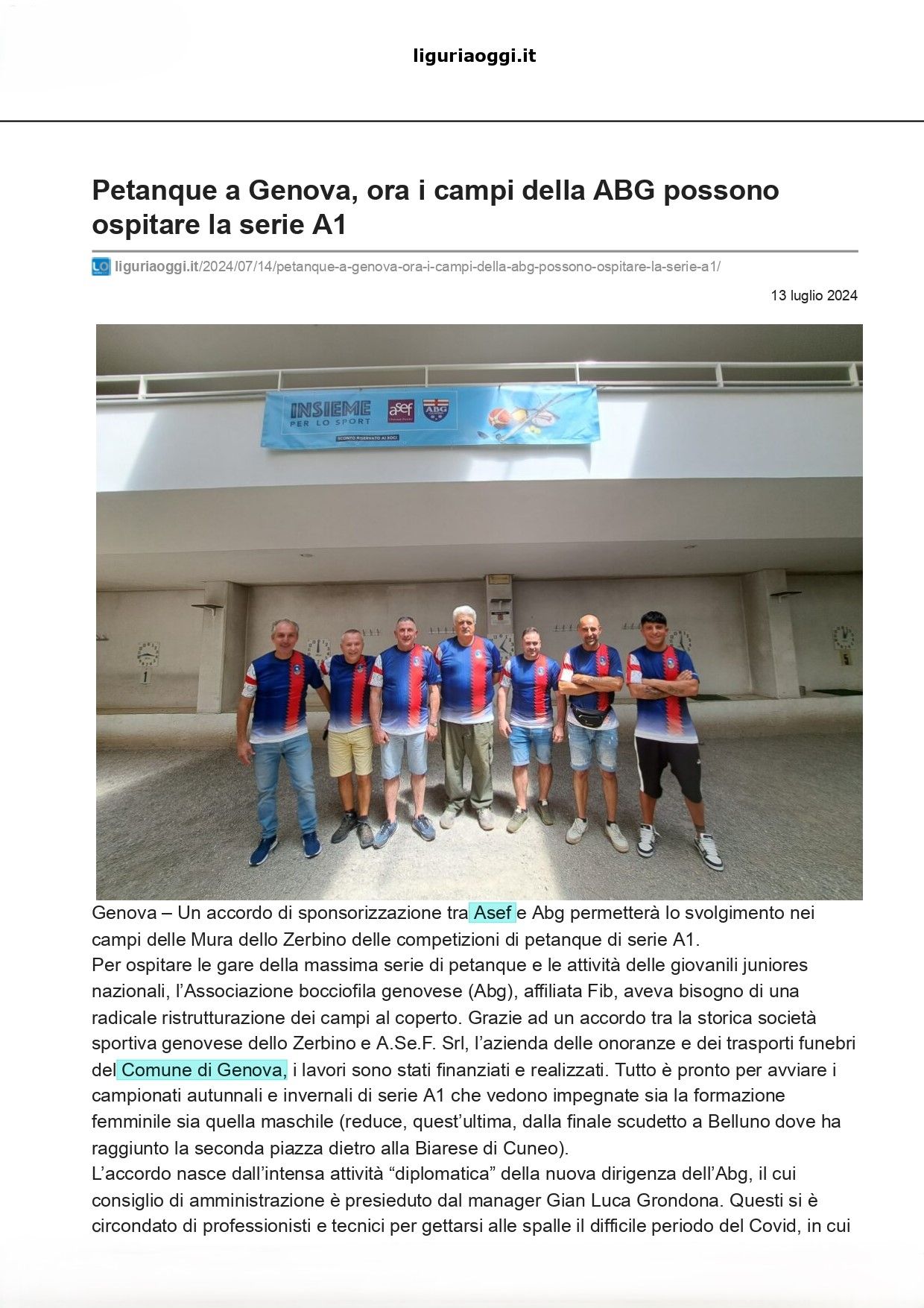 GENOVA 13 luglio 2024 - Per ospitare le gare della massima serie di petanque e le attività delle giovanili juniores nazionali, l’Associazione bocciofila genovese (Abg), affiliata Fib, aveva bisogno di una radicale ristrutturazione dei campi al coperto. Grazie ad un accordo tra la storica società sportiva genovese dello Zerbino e A.Se.F. Srl, l’azienda delle onoranze e dei trasporti funebri del Comune di Genova, i lavori sono stati finanziati e realizzati. Tutto è pronto per avviare i campionati autunnali e invernali di serie A1 che vedono impegnate sia la formazione femminile sia quella maschile (reduce, quest’ultima, dalla finale scudetto a Belluno dove ha raggiunto la seconda piazza dietro alla Biarese di Cuneo). L’accordo nasce dall’intensa attività “diplomatica” della nuova dirigenza dell’Abg, il cui consiglio di amministrazione è presieduto dal manager Gian Luca Grondona. Questi si è circondato di professionisti e tecnici per gettarsi alle spalle il difficile periodo del Covid, in cui i predecessori avevano dovuto fare i conti con chiusure, sospensione delle attività e dei tesseramenti, perdita di associati. Immediata l’intesa per una sponsorizzazione biennale con A.Se.F., l’azienda che, con il programma “A.Se.F. per lo Sport”, ha dato vita ad una serie di joint venture con società sportive genovesi dalla storia consolidata e dal conclamato impegno sociale. «Oggi Abg conta 385 soci e oltre mille frequentatori – dice Grondona – La vocazione principale della società resta quella del gioco delle bocce, sia petanque che volo. Per questo abbiamo avviato un progetto che coinvolge i ragazzi delle scuole genovesi, così da avvicinarli a queste discipline sportive che da oltre un secolo appassionano i genovesi». Il vivaio è importante per sostenere le prime squadre e formare i campioni di domani. «Oggi abbiamo due formazioni di A1 femminile e maschile – precisa Grondona – Nel femminile possiamo vantare tre membri della Nazionale di petanque (Valentina Petulicchio, Serena Sacco, Sara Ferrera, ndr); nel maschile, tra gli altri, anche di Hilal Boulassal, campione europeo. Gli juniores stanno dando grandi soddisfazioni. Ma la società non è fatta di soli campioni». Molto ampia l’attività sociale, a partire dalla squadra “Special” che, grazie ad un accordo con Anffas Liguria, dal 1997 porta avanti un progetto per persone con disabilità intellettiva relazionale, regolarmente tesserati Fib e impegnati in campionati regolari. «Abg è oggi una realtà poliedrica – conclude Gian Luca Grondona – Possiamo vantare 8 campi da volo, 22 da petanque, un campo da calcetto, uno da beach volley, un campo da atletica, due da tennis. Gestiamo strutture ricreative e un parcheggio al servizio del quartiere. La nostra realtà ha bisogno di partner solidi che condividano la nostra idea di socialità». Piena sintonia con la dirigenza di A.Se.F.. «Abg è una realtà nata nel 1913 alle Mura dello Zerbino e da allora sempre attiva nel centro della nostra città – commentano i vertici di A.Se.F., gli avvocati Maurizio Barabino e Franco Rossetti – A.Se.F., allora con il nome di Atf, è stata fondata nel 1909. Due storie antiche, solide e serie della nostra Genova si sono incontrate per condividere un percorso comune di sport e socialità. Gli intenti e gli obiettivi di Gian Luca Grondona e del suo gruppo di lavoro ci hanno pienamente convinti a sostenerli, avviando un percorso che speriamo possa trovare ulteriori sviluppi nel tempo».