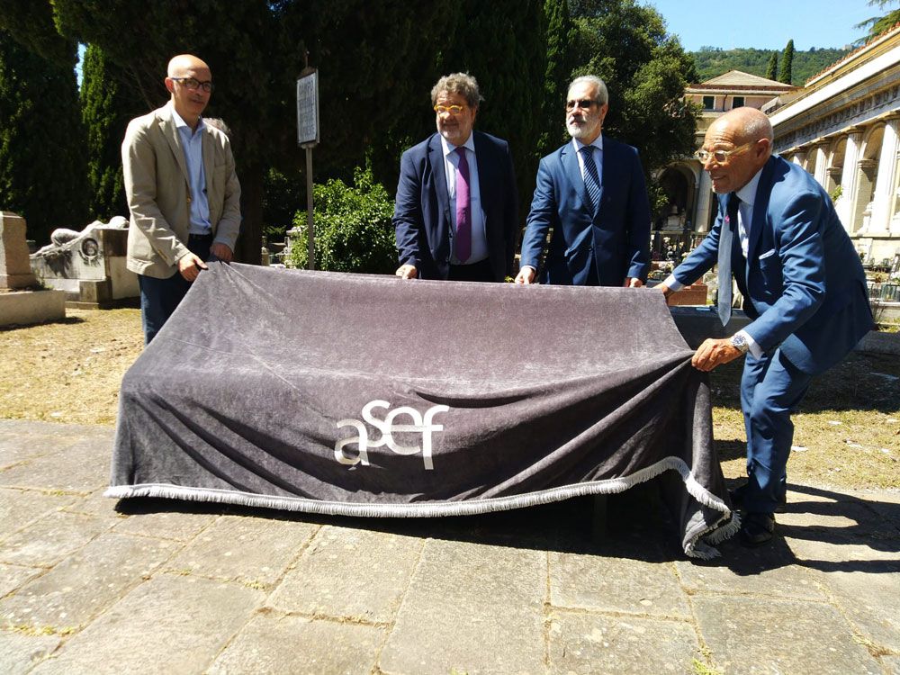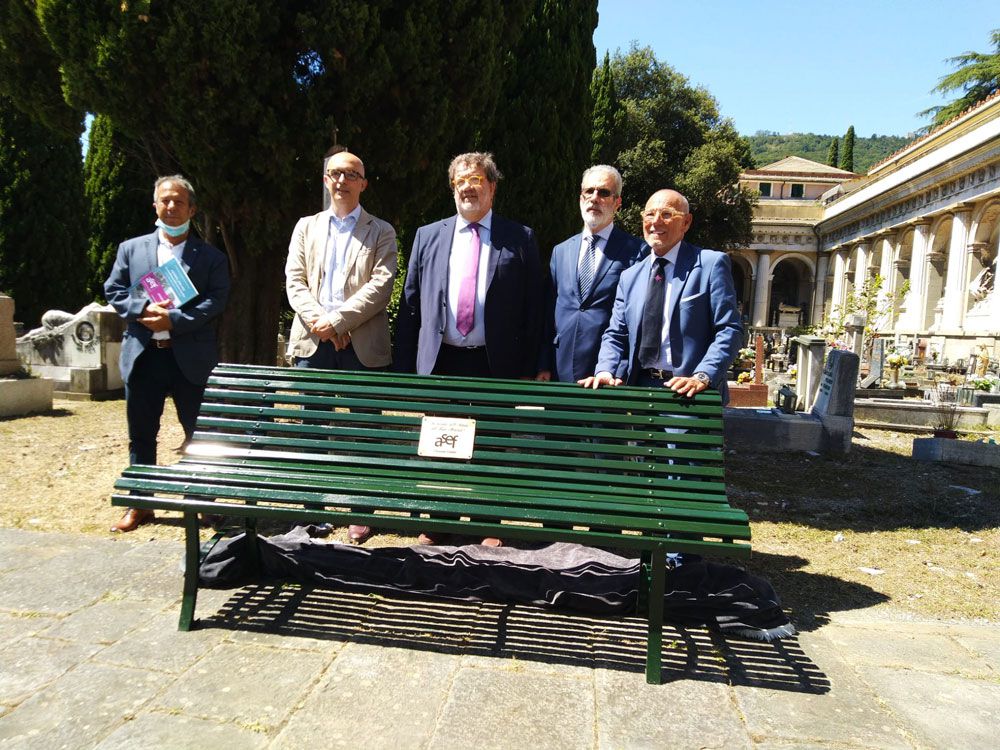 Presenti alla cerimonia l’assessore ai Trasporti Matteo Campora insieme ad altri membri della giunta comunale, la professoressa Clara Rubbi, e l’ispettore del cimitero di Staglieno Egle De Ferrari Rolleri.